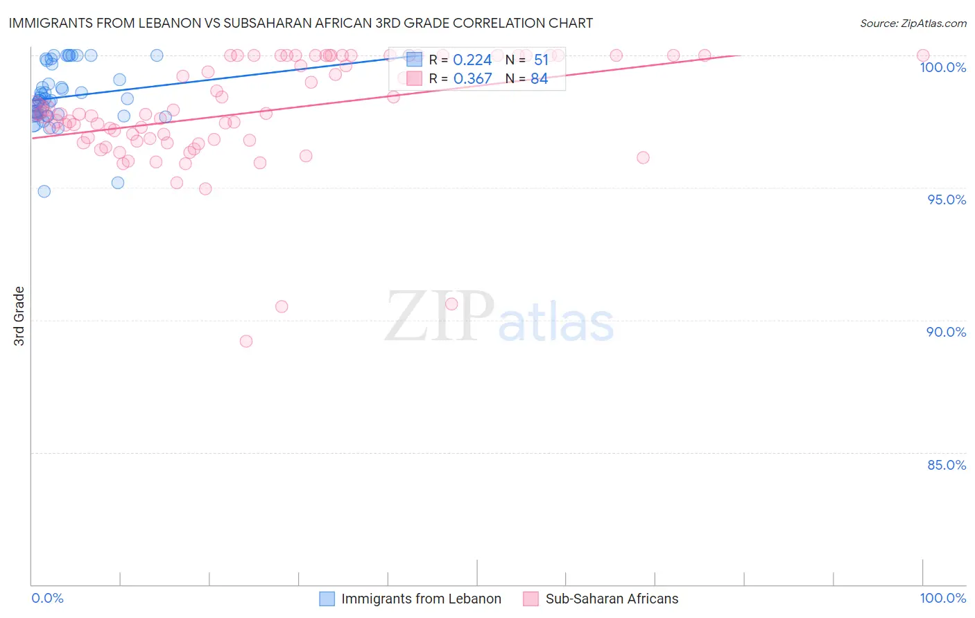 Immigrants from Lebanon vs Subsaharan African 3rd Grade Correlation Chart