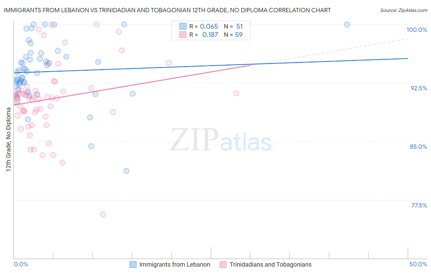 Immigrants from Lebanon vs Trinidadian and Tobagonian 12th Grade, No Diploma Correlation Chart
