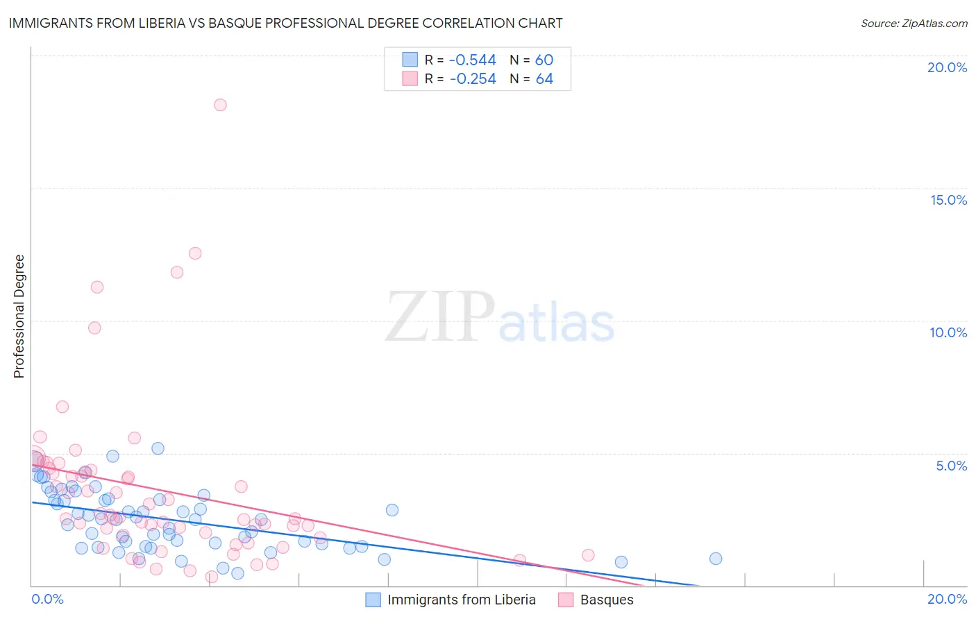 Immigrants from Liberia vs Basque Professional Degree Correlation Chart