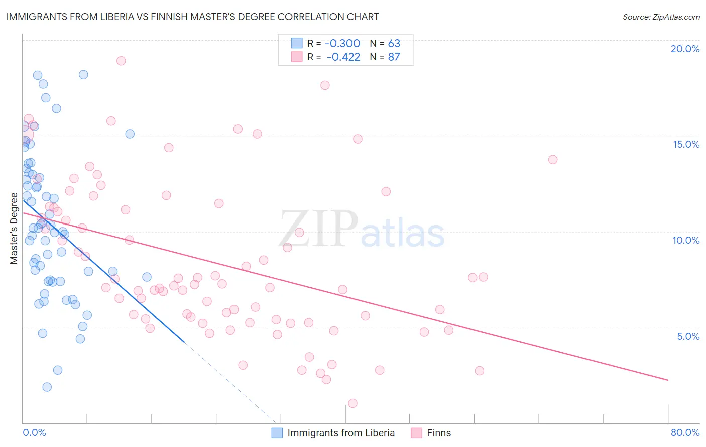 Immigrants from Liberia vs Finnish Master's Degree Correlation Chart
