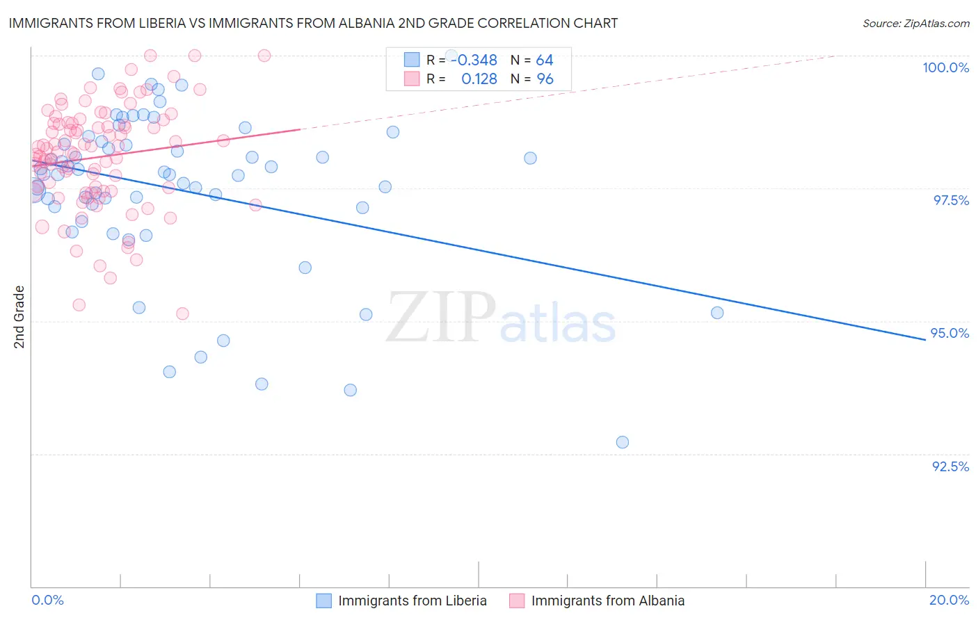 Immigrants from Liberia vs Immigrants from Albania 2nd Grade Correlation Chart