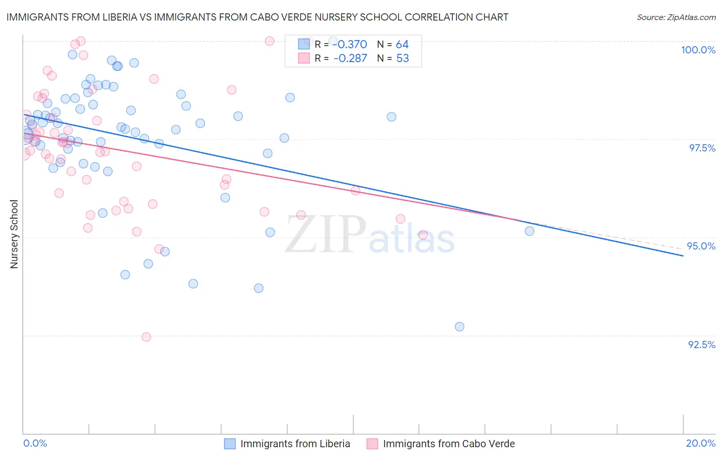 Immigrants from Liberia vs Immigrants from Cabo Verde Nursery School Correlation Chart