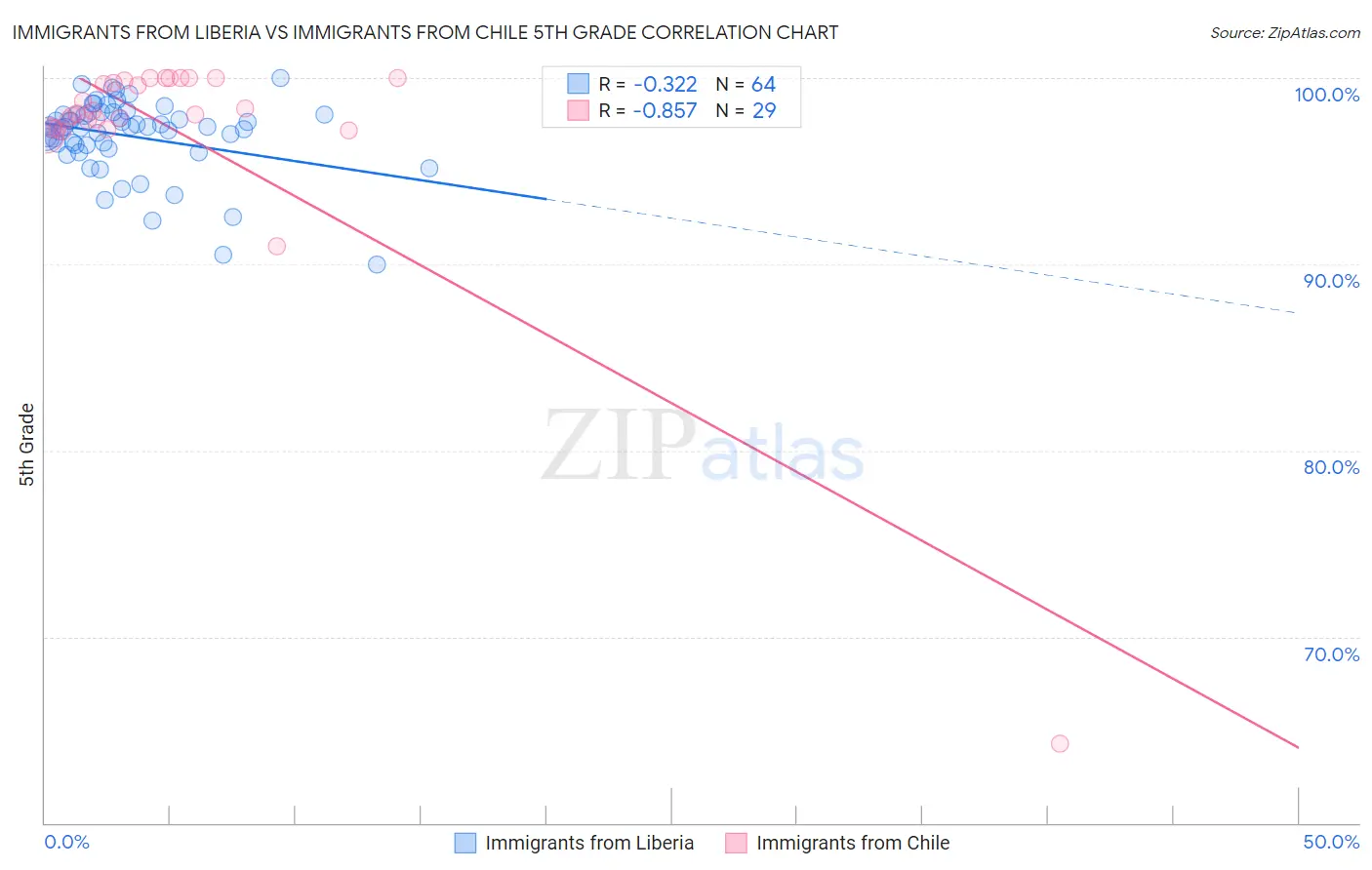 Immigrants from Liberia vs Immigrants from Chile 5th Grade Correlation Chart