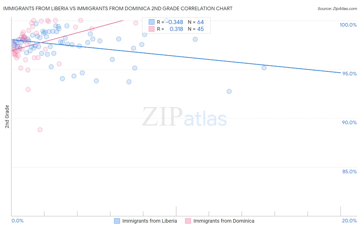 Immigrants from Liberia vs Immigrants from Dominica 2nd Grade Correlation Chart