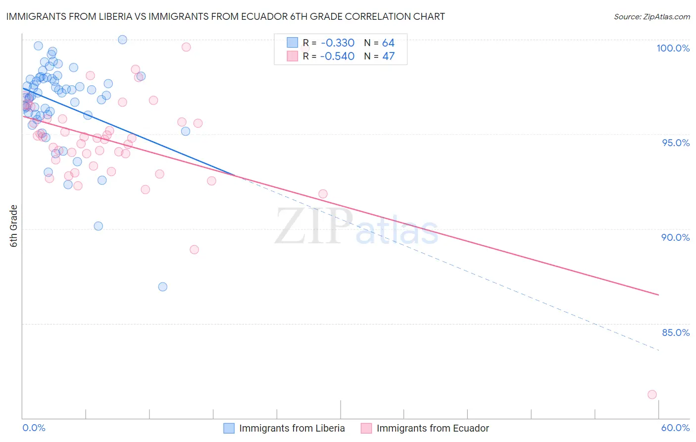 Immigrants from Liberia vs Immigrants from Ecuador 6th Grade Correlation Chart
