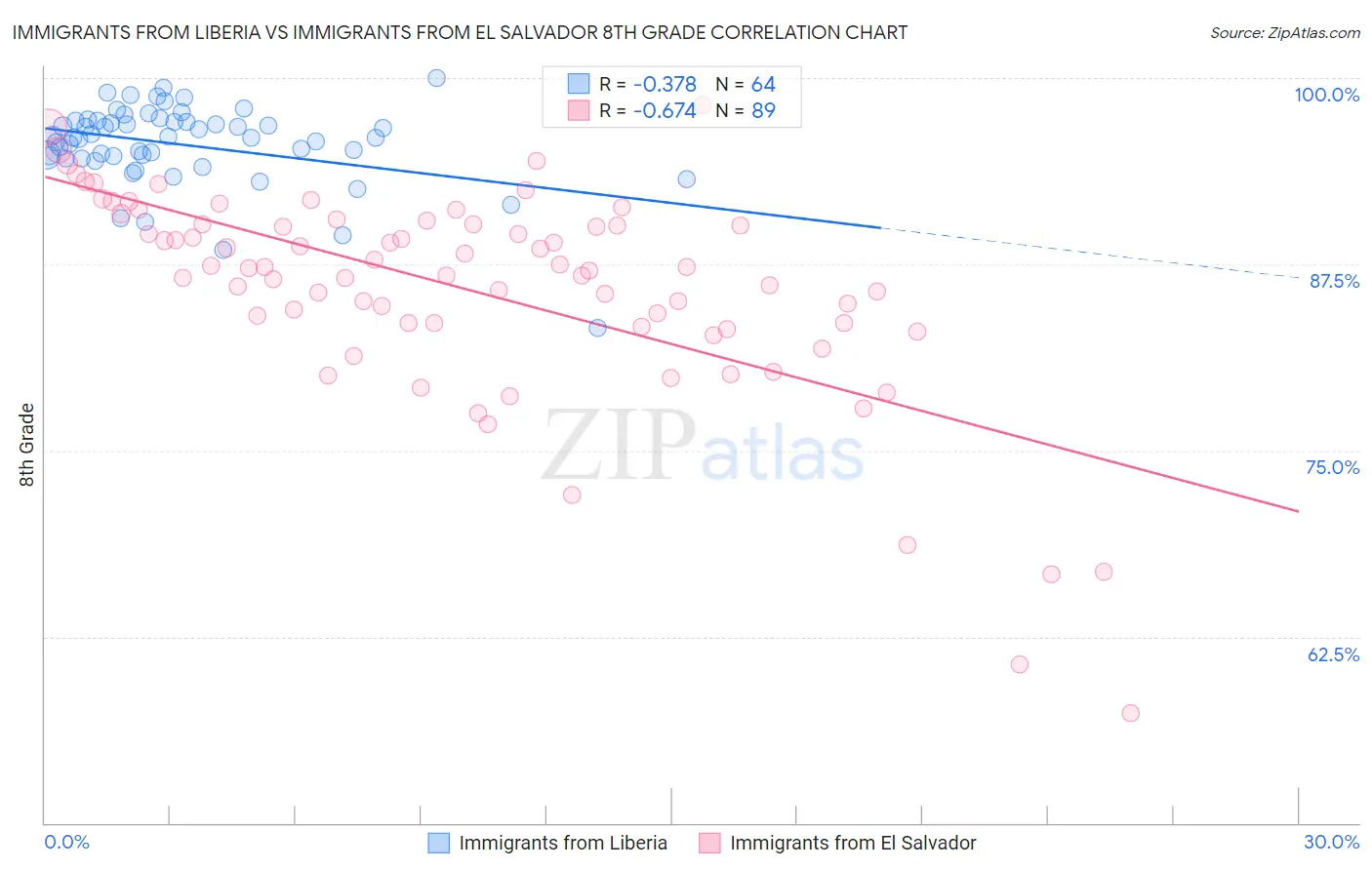 Immigrants from Liberia vs Immigrants from El Salvador 8th Grade Correlation Chart