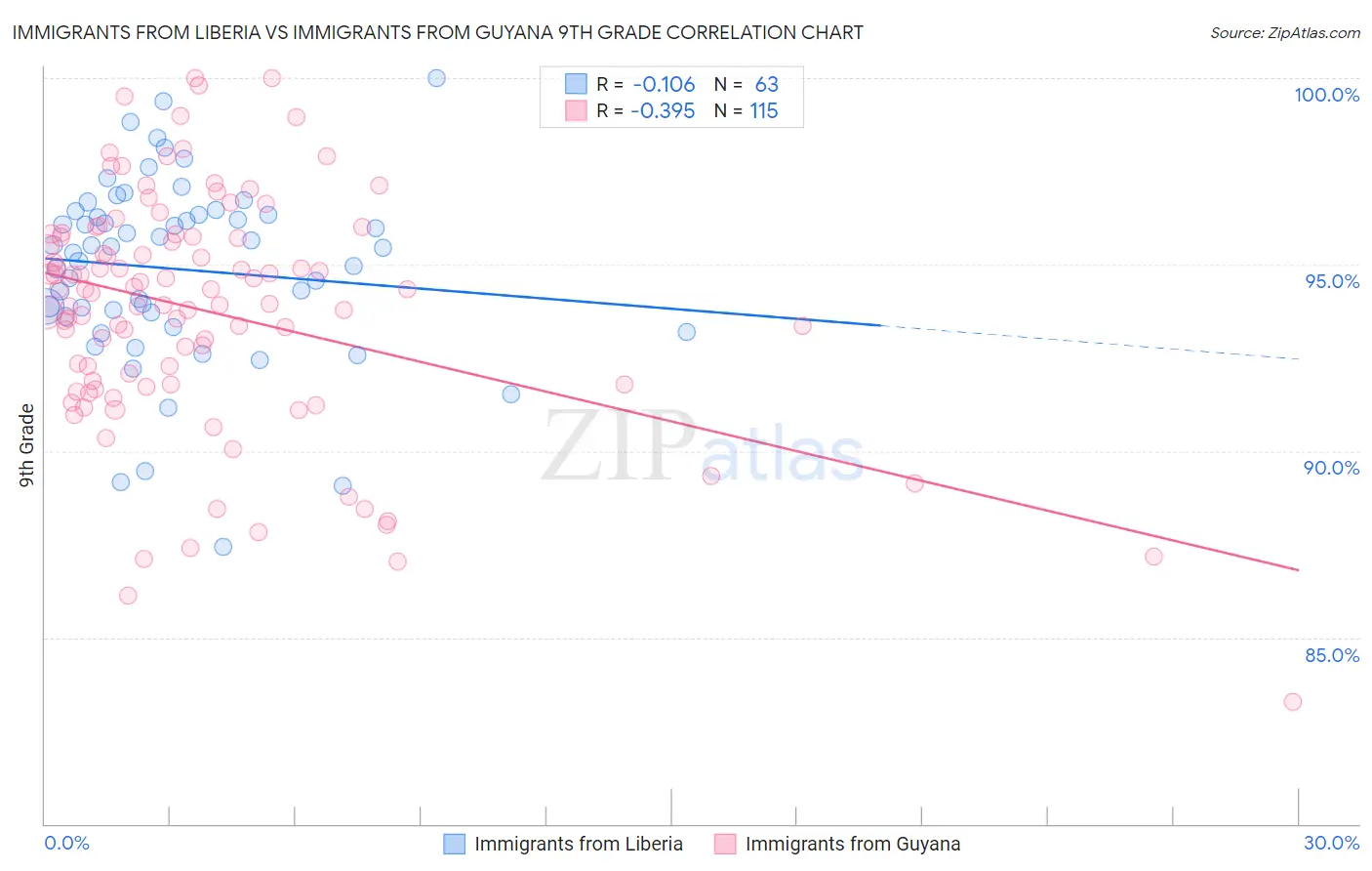 Immigrants from Liberia vs Immigrants from Guyana 9th Grade Correlation Chart