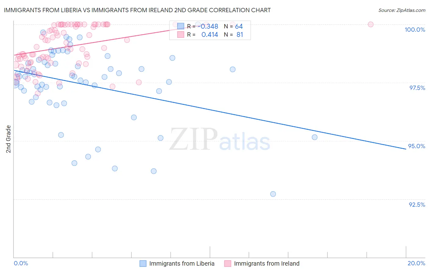 Immigrants from Liberia vs Immigrants from Ireland 2nd Grade Correlation Chart
