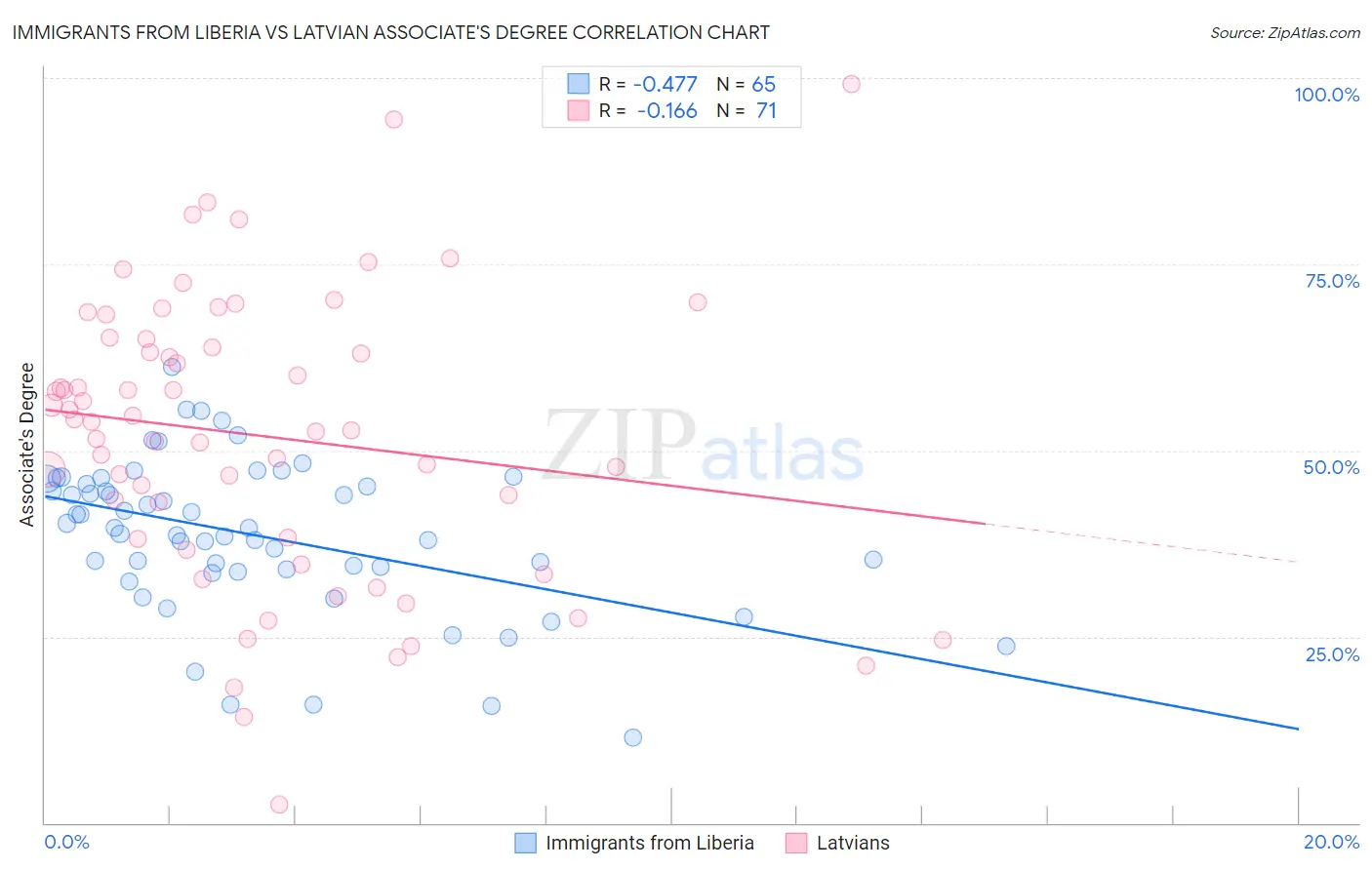 Immigrants from Liberia vs Latvian Associate's Degree Correlation Chart