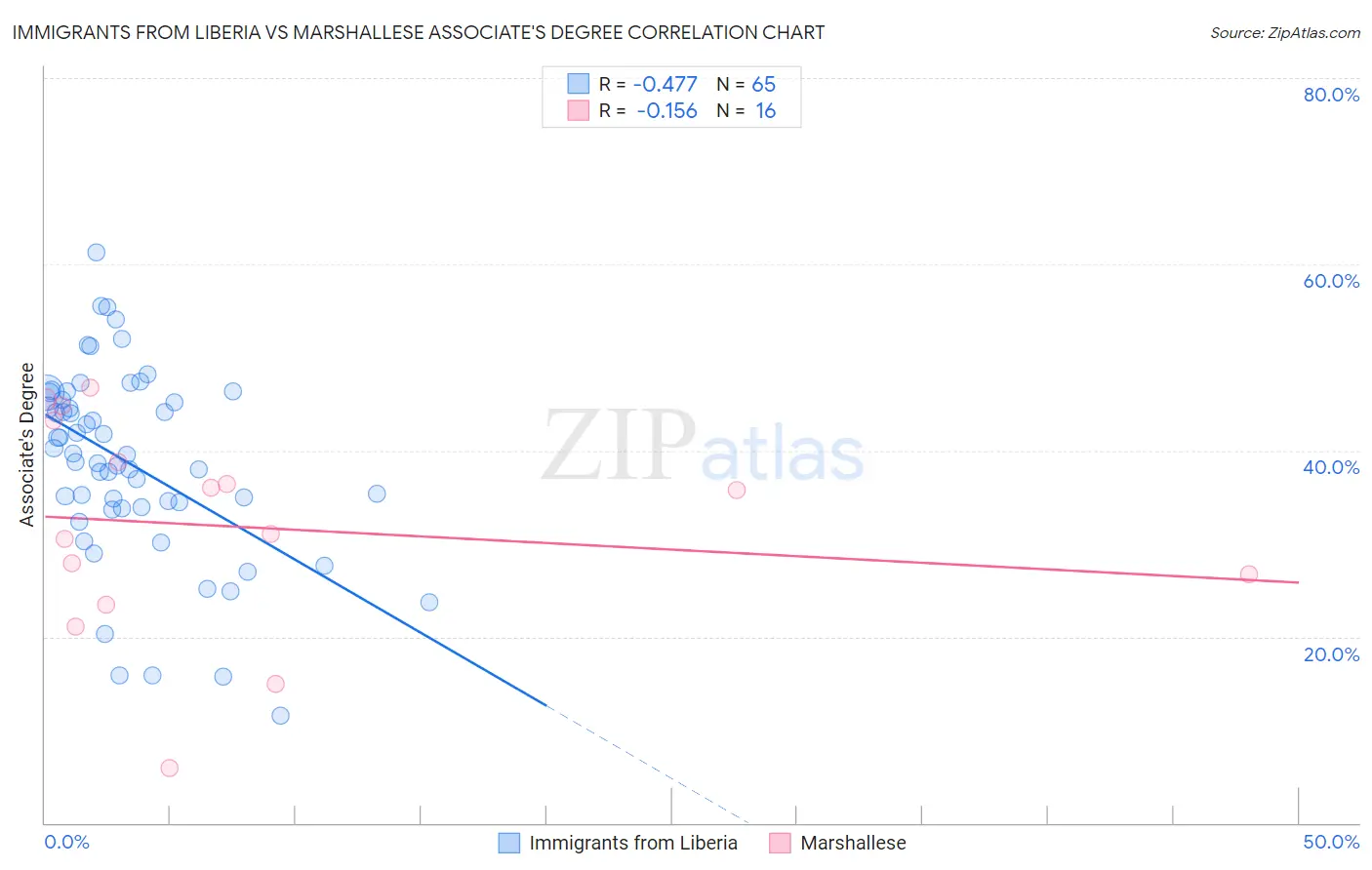 Immigrants from Liberia vs Marshallese Associate's Degree Correlation Chart