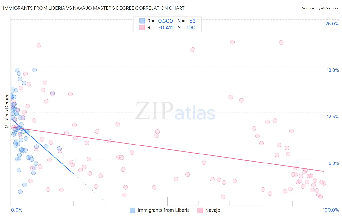 Immigrants from Liberia vs Navajo Master's Degree Correlation Chart