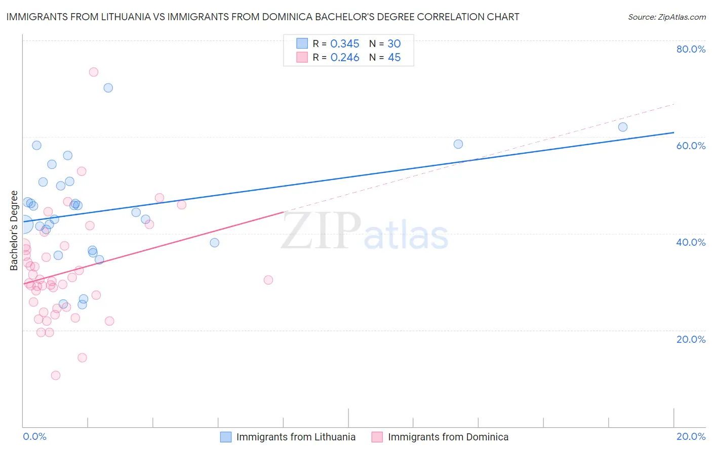 Immigrants from Lithuania vs Immigrants from Dominica Bachelor's Degree Correlation Chart