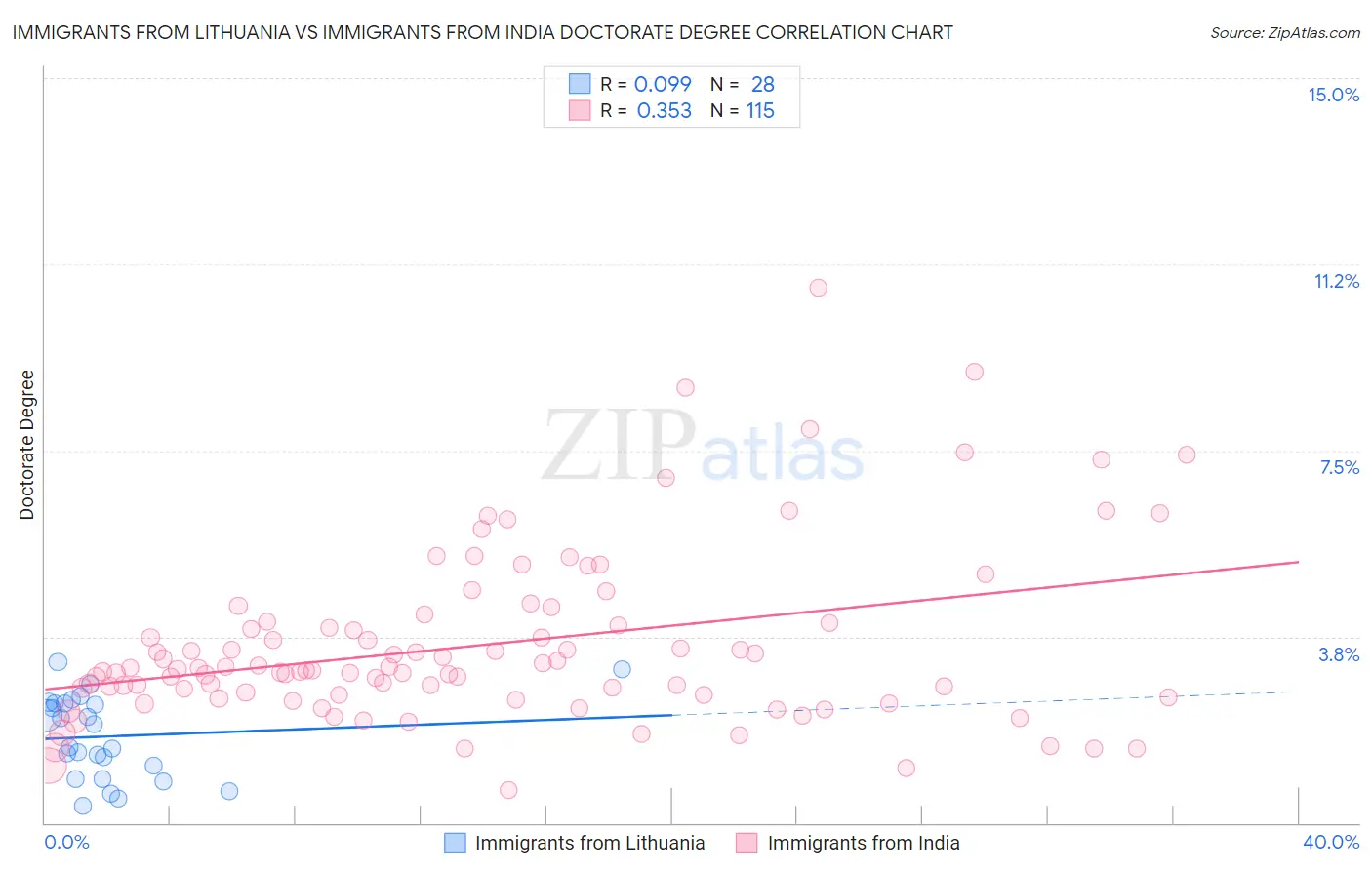 Immigrants from Lithuania vs Immigrants from India Doctorate Degree Correlation Chart