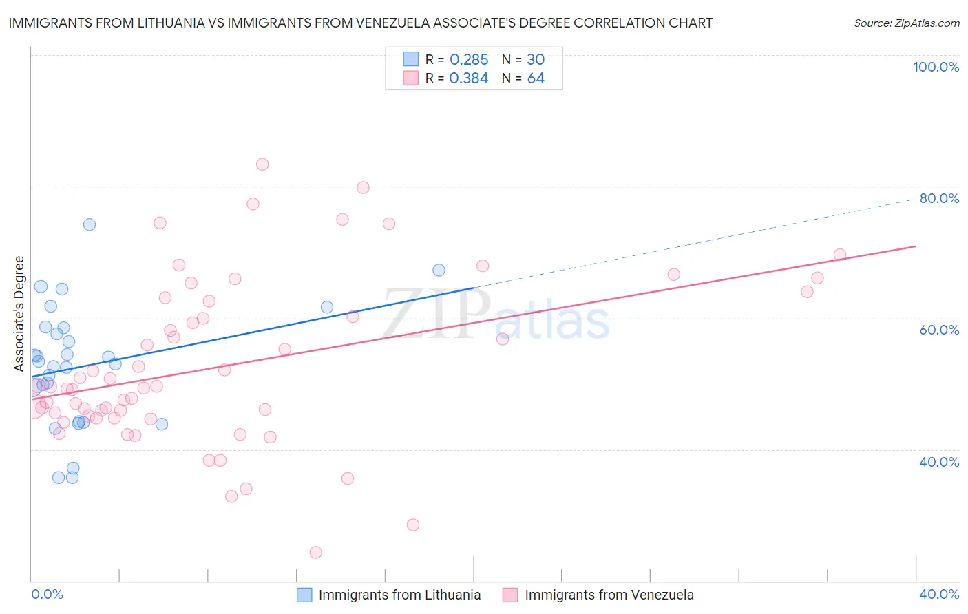 Immigrants from Lithuania vs Immigrants from Venezuela Associate's Degree Correlation Chart