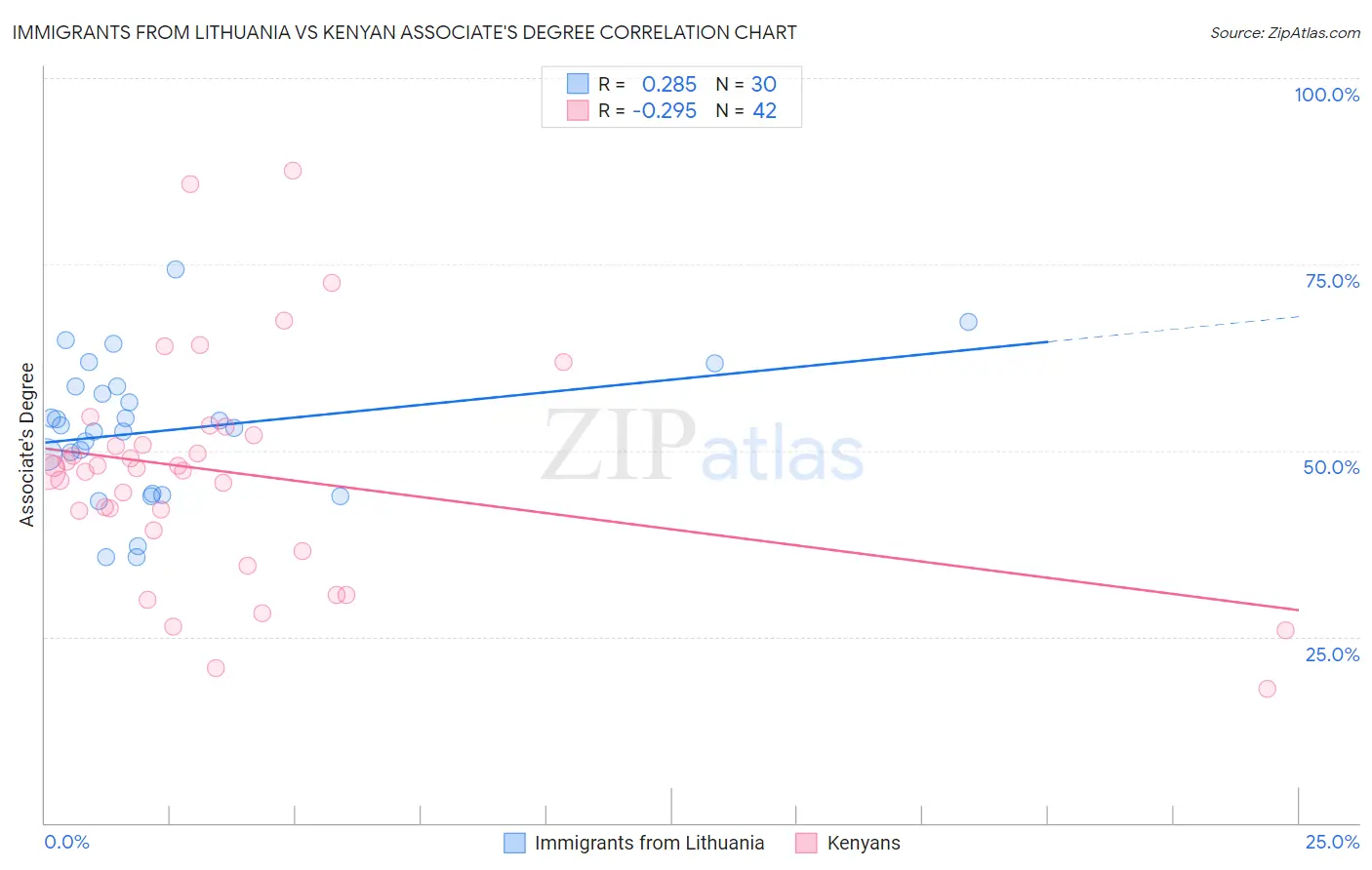 Immigrants from Lithuania vs Kenyan Associate's Degree Correlation Chart