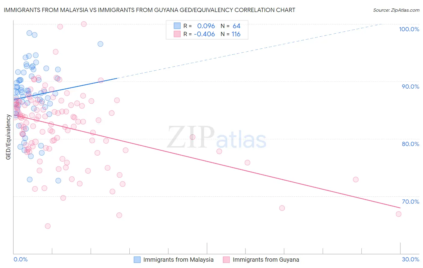 Immigrants from Malaysia vs Immigrants from Guyana GED/Equivalency Correlation Chart