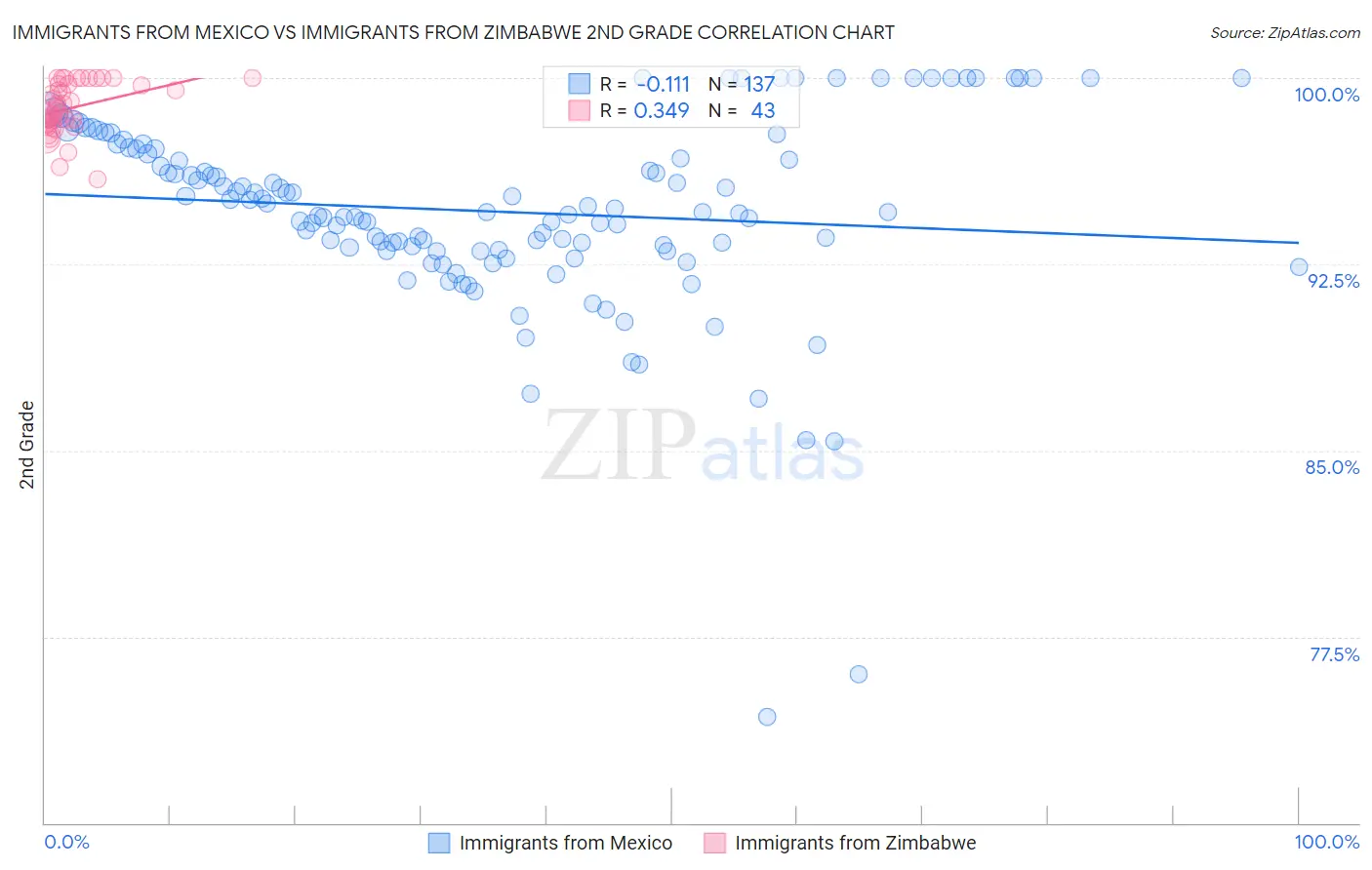 Immigrants from Mexico vs Immigrants from Zimbabwe 2nd Grade Correlation Chart