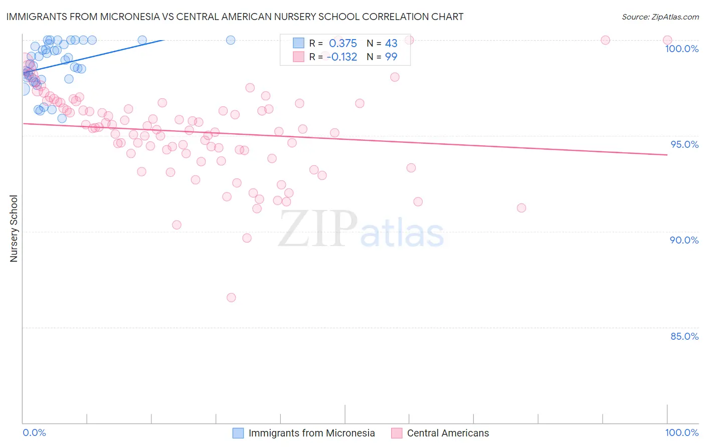 Immigrants from Micronesia vs Central American Nursery School Correlation Chart