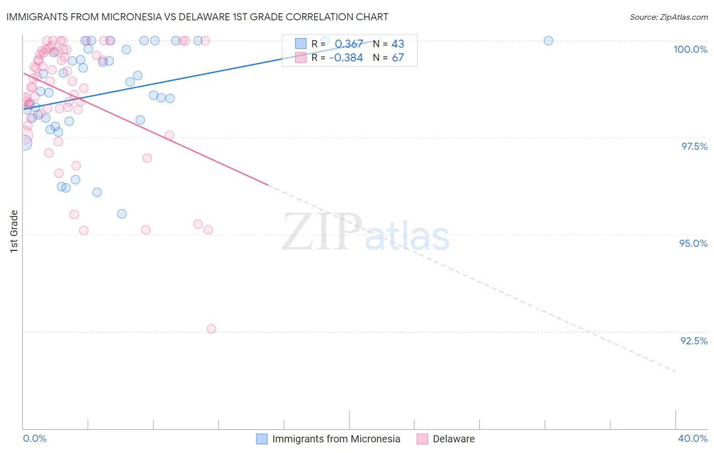 Immigrants from Micronesia vs Delaware 1st Grade Correlation Chart