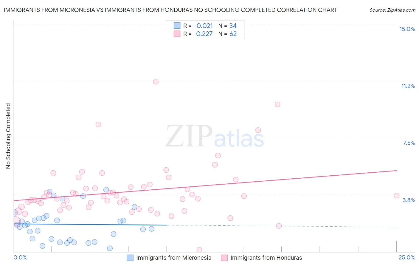 Immigrants from Micronesia vs Immigrants from Honduras No Schooling Completed Correlation Chart