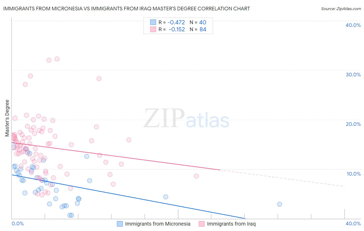 Immigrants from Micronesia vs Immigrants from Iraq Master's Degree Correlation Chart