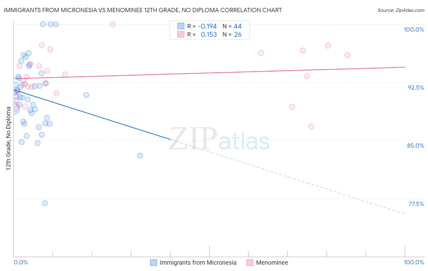 Immigrants from Micronesia vs Menominee 12th Grade, No Diploma Correlation Chart