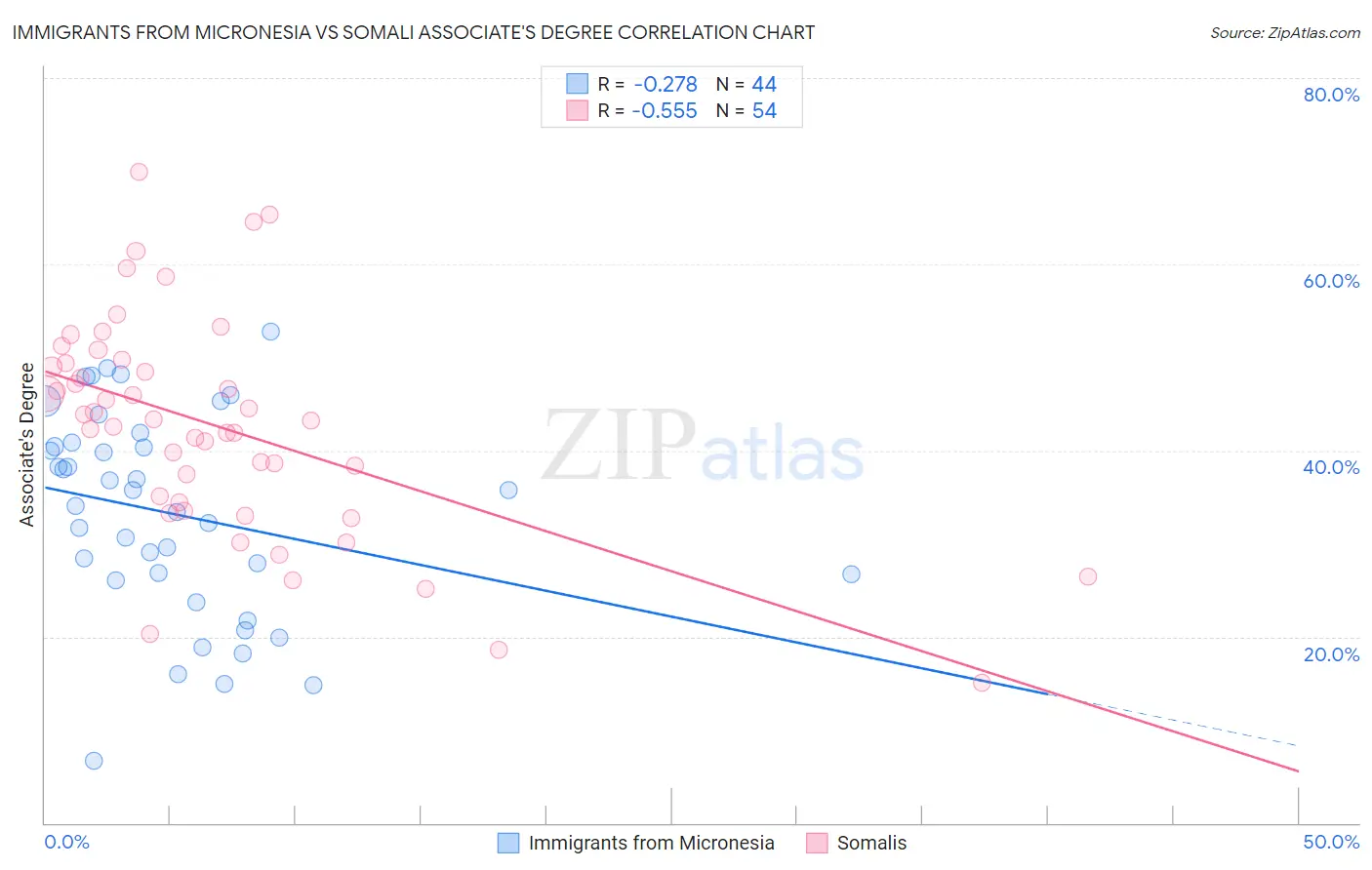 Immigrants from Micronesia vs Somali Associate's Degree Correlation Chart