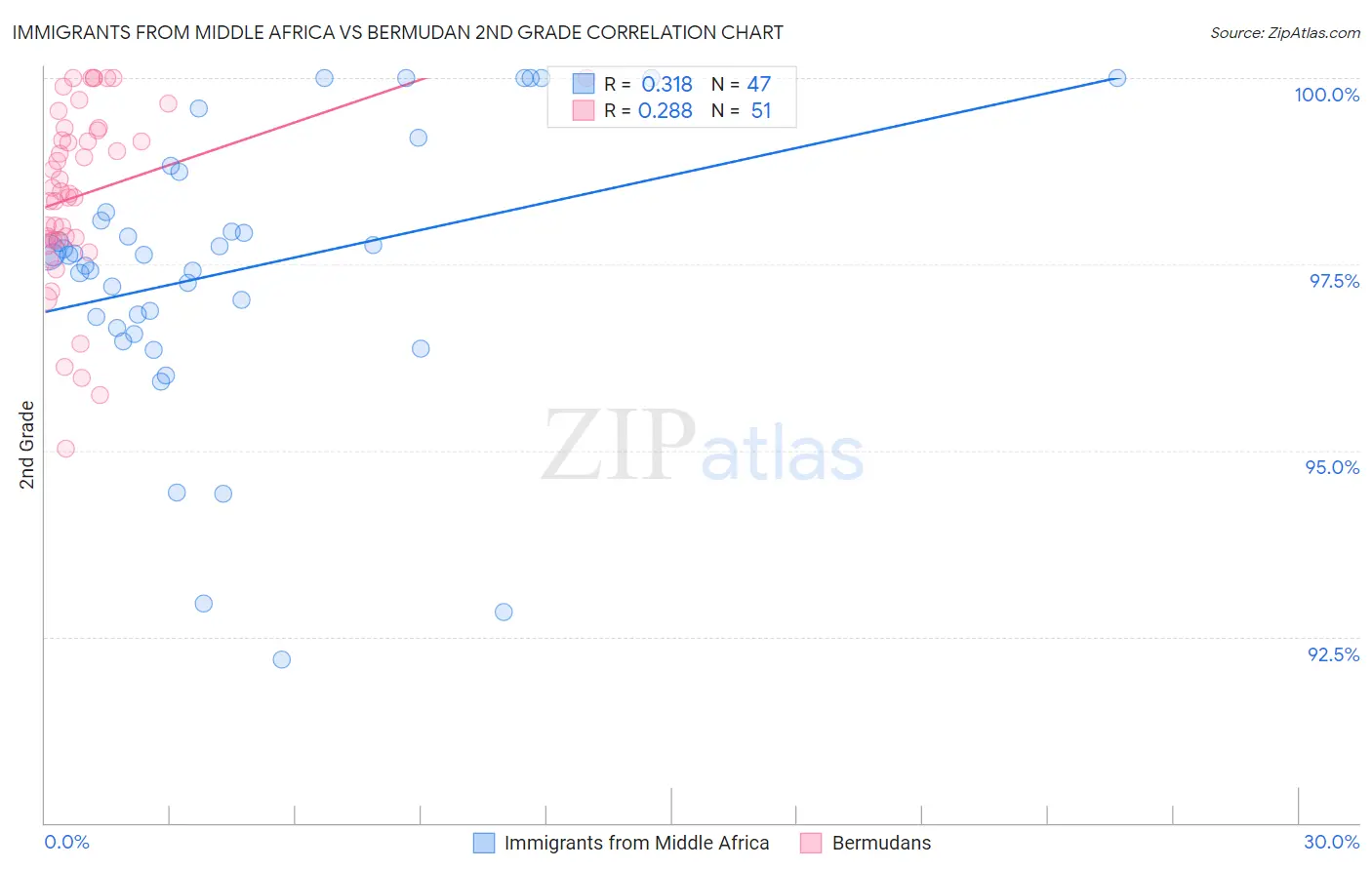 Immigrants from Middle Africa vs Bermudan 2nd Grade Correlation Chart