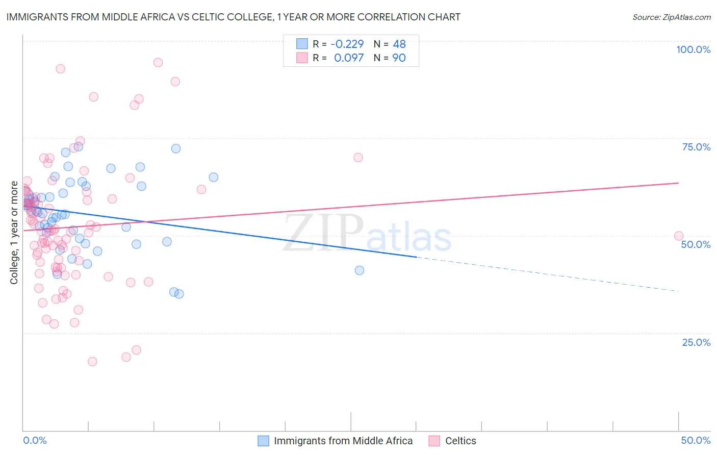 Immigrants from Middle Africa vs Celtic College, 1 year or more Correlation Chart