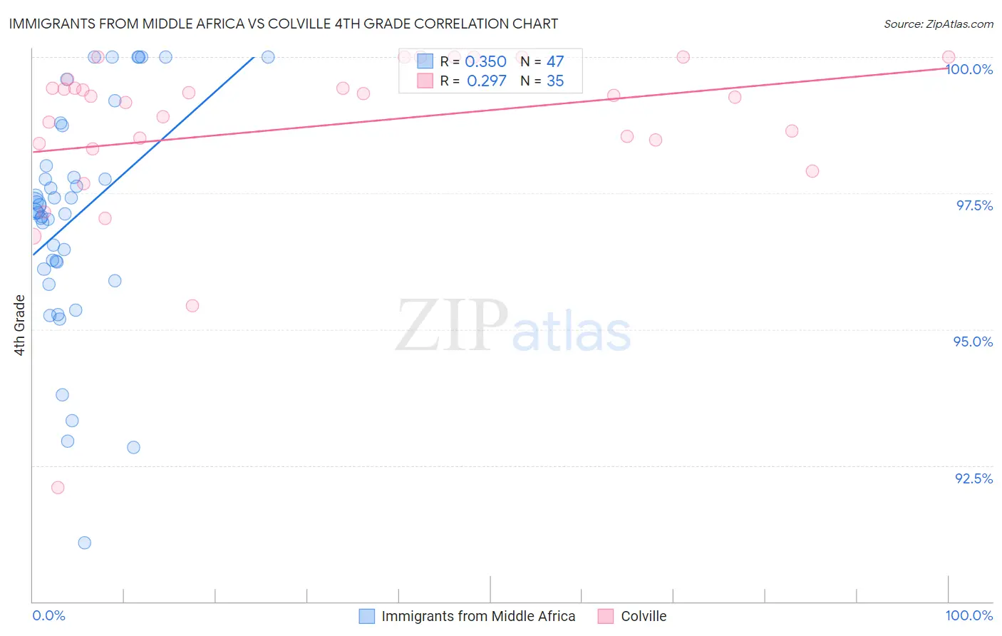 Immigrants from Middle Africa vs Colville 4th Grade Correlation Chart