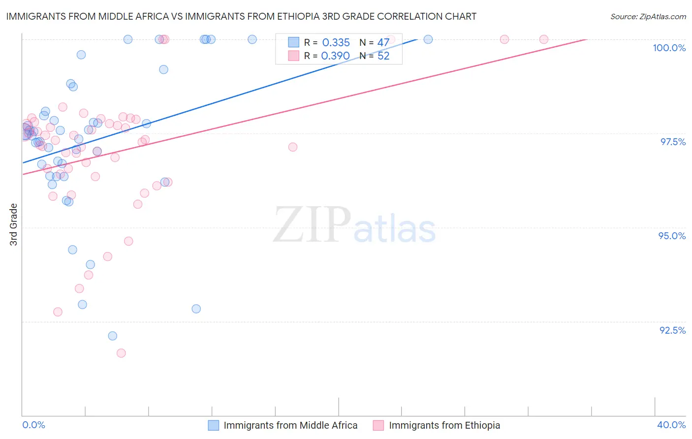 Immigrants from Middle Africa vs Immigrants from Ethiopia 3rd Grade Correlation Chart