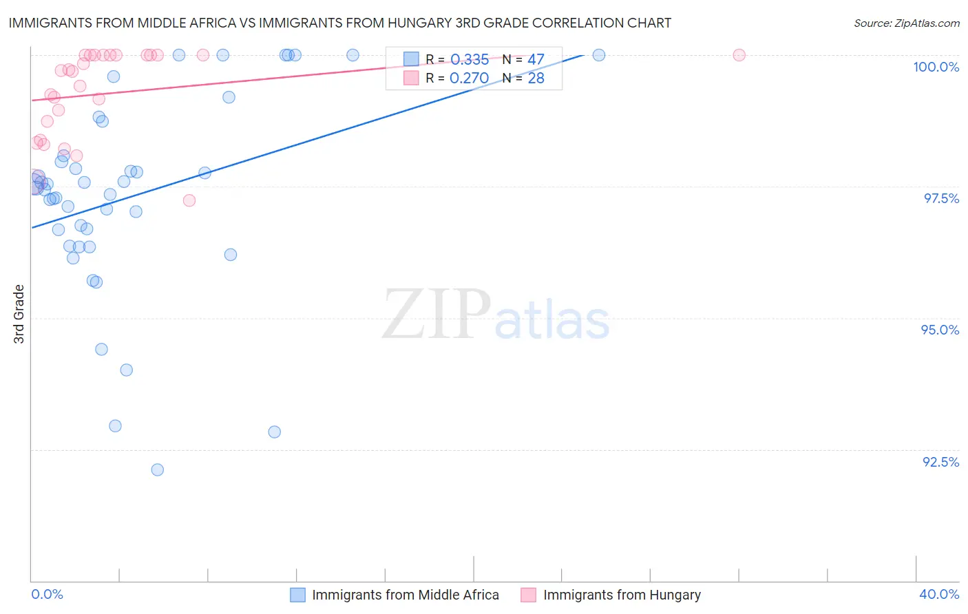 Immigrants from Middle Africa vs Immigrants from Hungary 3rd Grade Correlation Chart