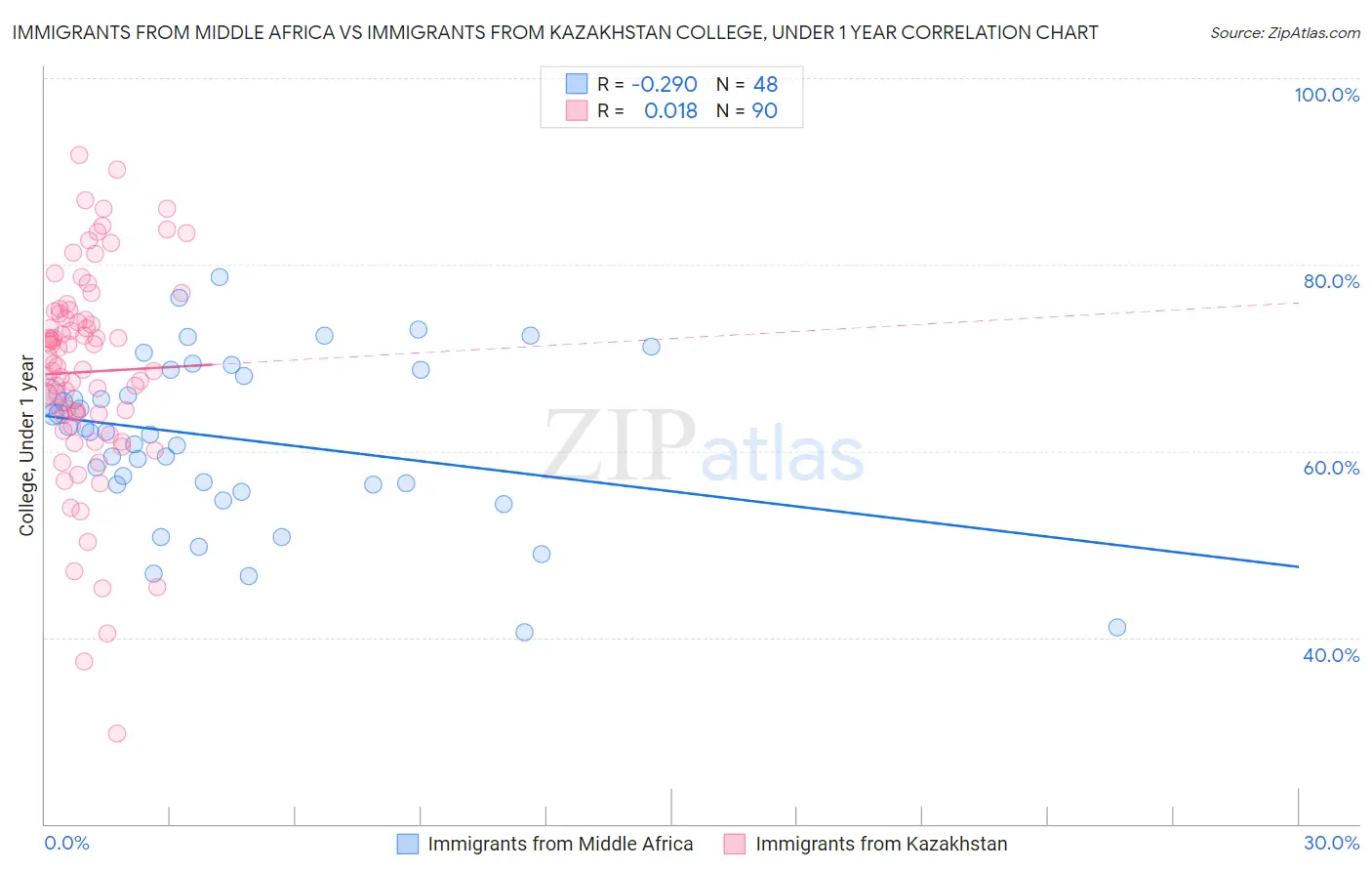 Immigrants from Middle Africa vs Immigrants from Kazakhstan College, Under 1 year Correlation Chart