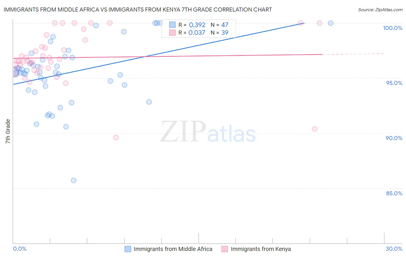 Immigrants from Middle Africa vs Immigrants from Kenya 7th Grade Correlation Chart