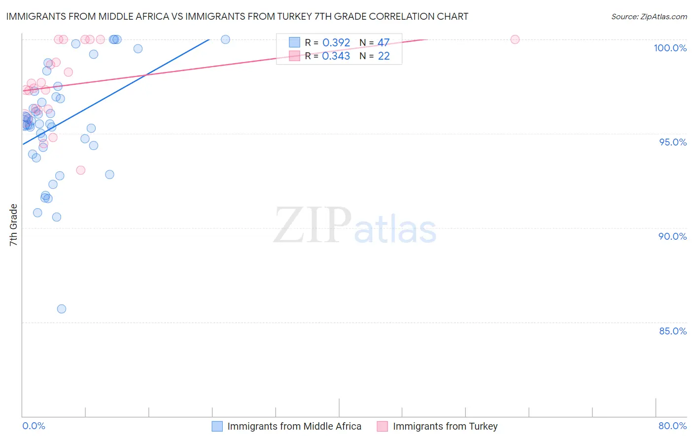 Immigrants from Middle Africa vs Immigrants from Turkey 7th Grade Correlation Chart