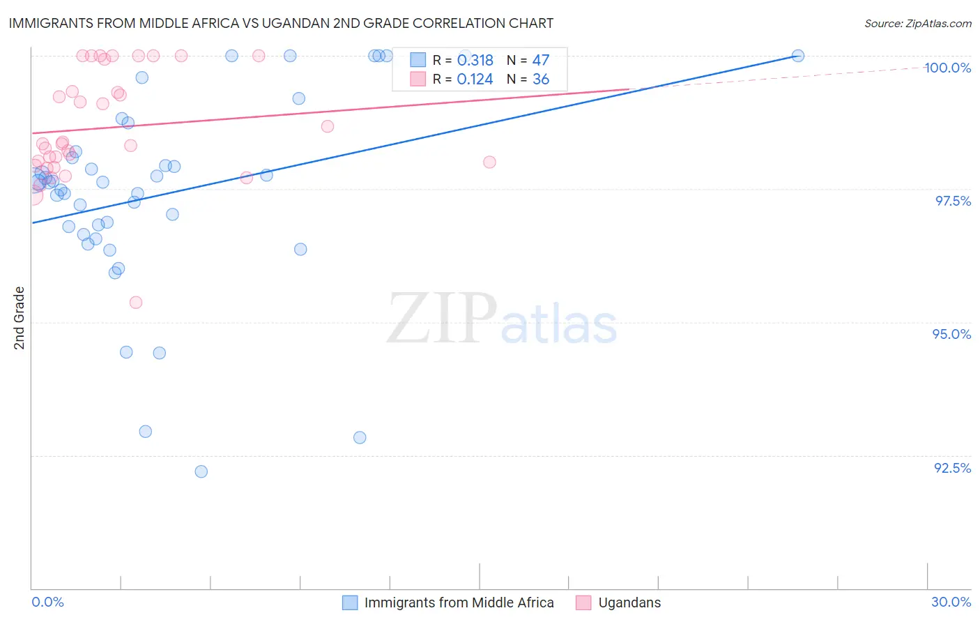 Immigrants from Middle Africa vs Ugandan 2nd Grade Correlation Chart