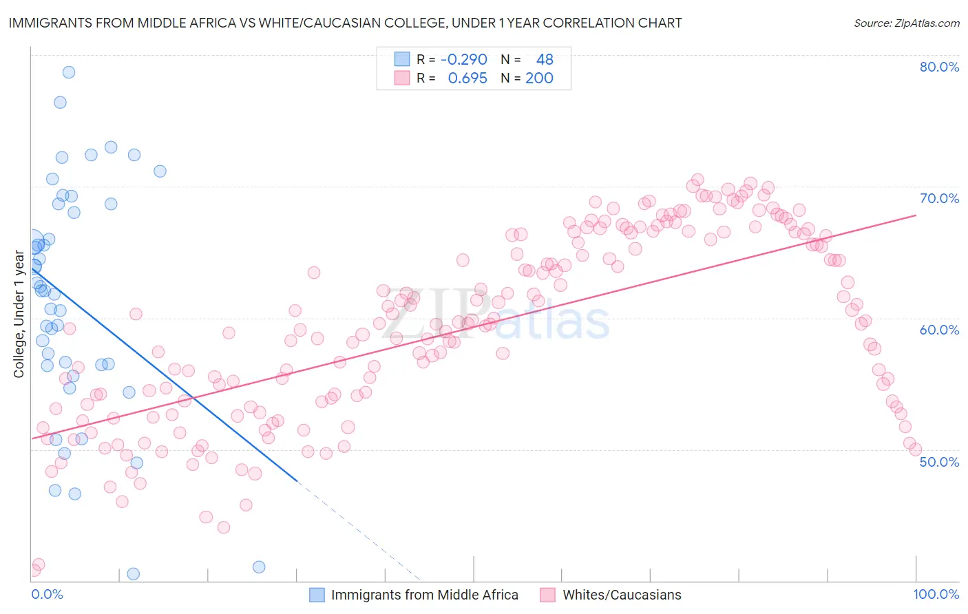 Immigrants from Middle Africa vs White/Caucasian College, Under 1 year Correlation Chart