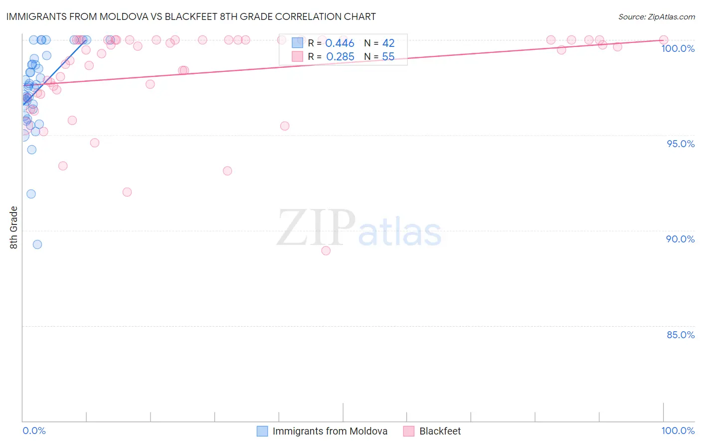 Immigrants from Moldova vs Blackfeet 8th Grade Correlation Chart