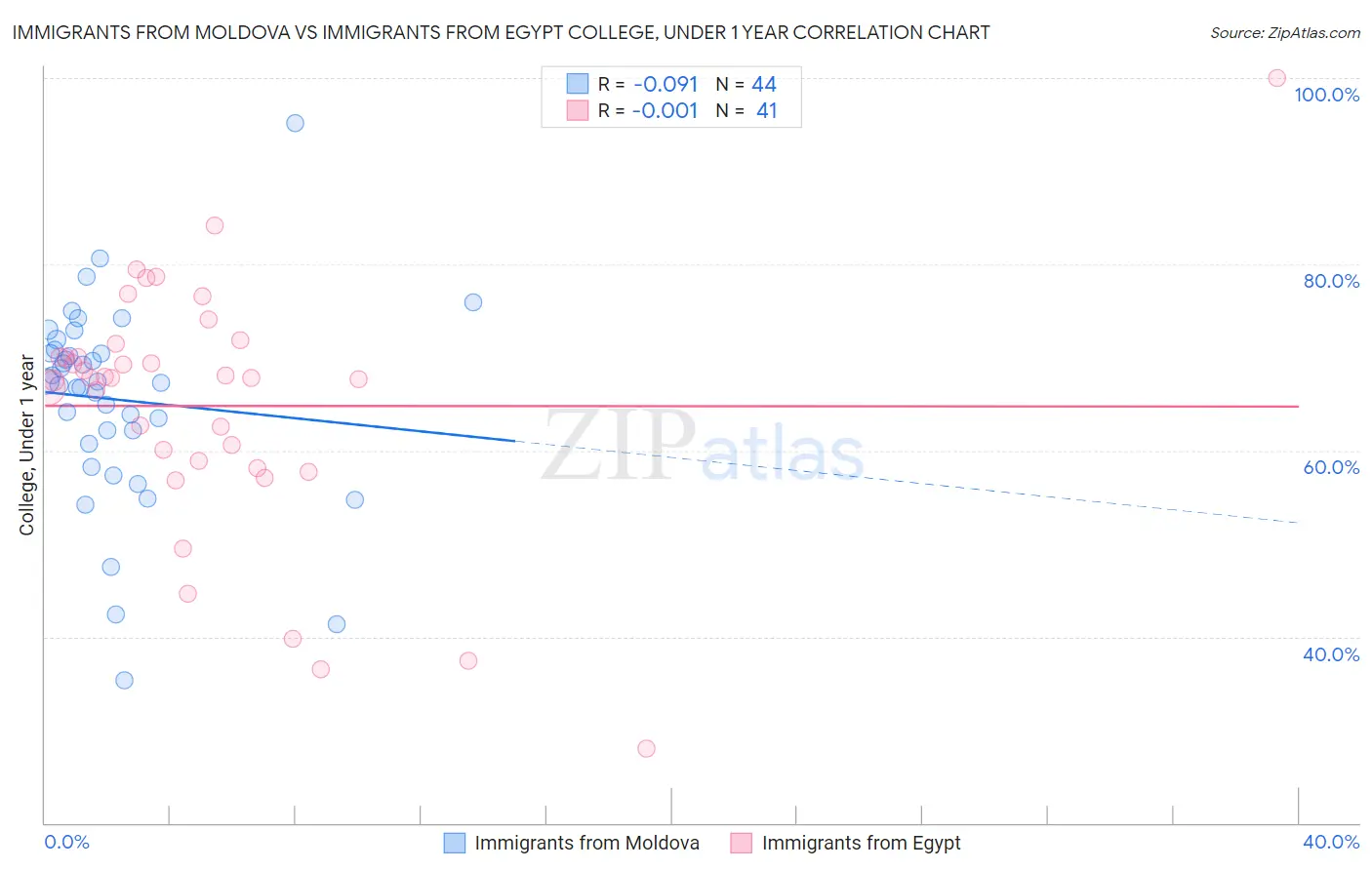 Immigrants from Moldova vs Immigrants from Egypt College, Under 1 year Correlation Chart