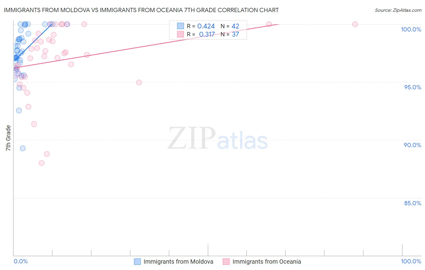 Immigrants from Moldova vs Immigrants from Oceania 7th Grade Correlation Chart