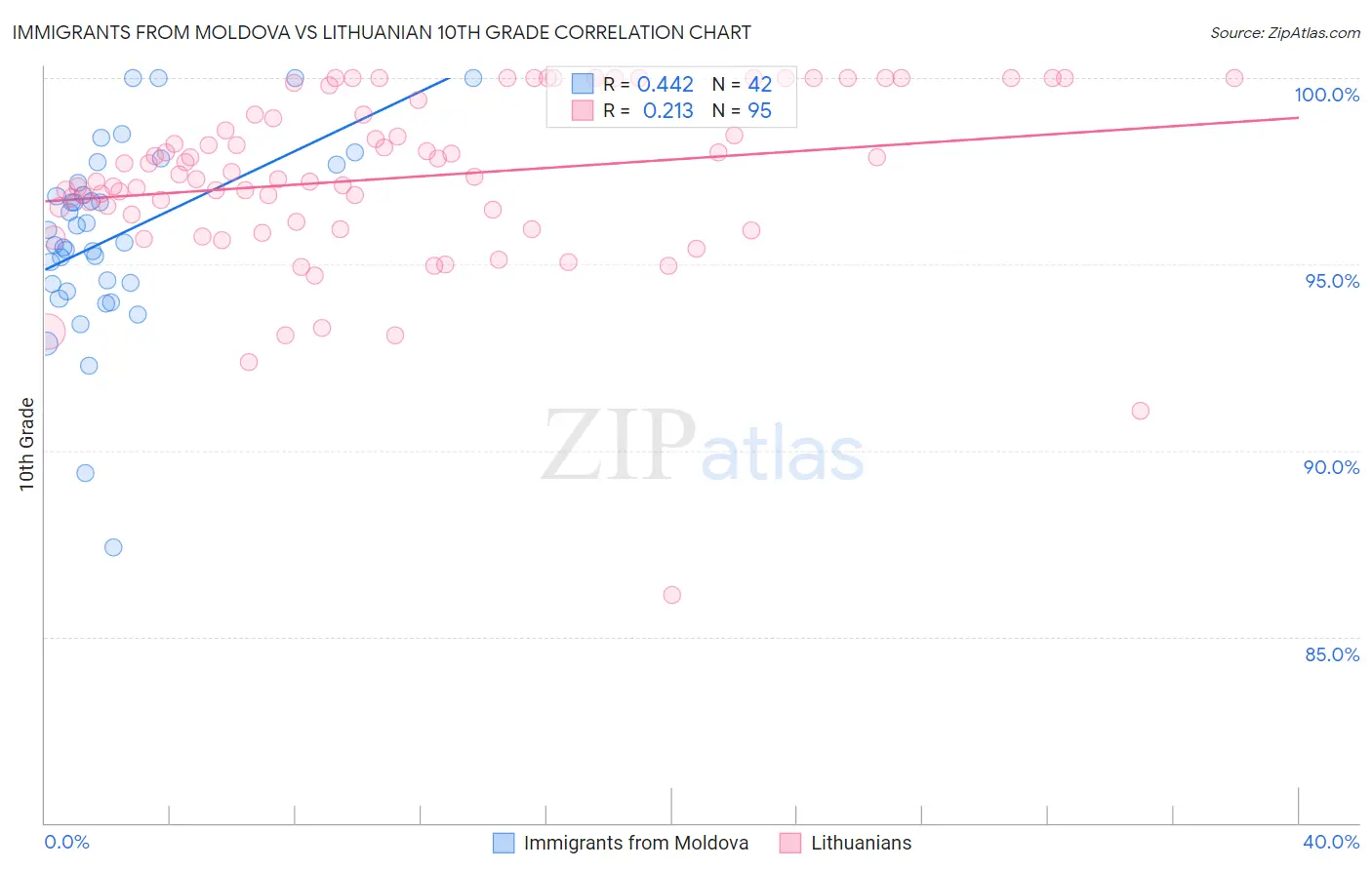 Immigrants from Moldova vs Lithuanian 10th Grade Correlation Chart