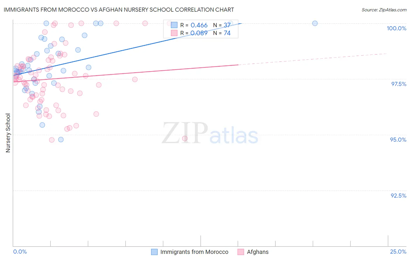 Immigrants from Morocco vs Afghan Nursery School Correlation Chart