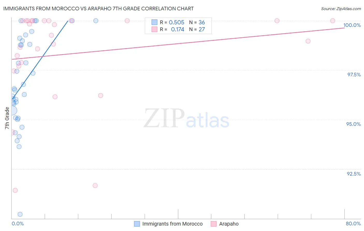 Immigrants from Morocco vs Arapaho 7th Grade Correlation Chart
