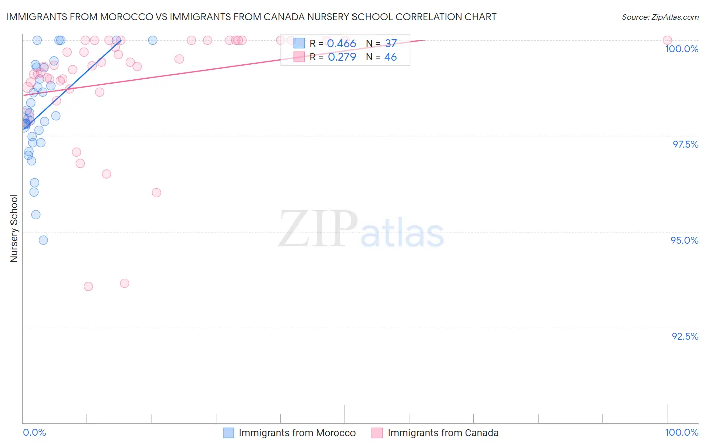 Immigrants from Morocco vs Immigrants from Canada Nursery School Correlation Chart