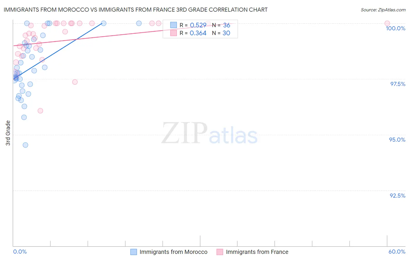 Immigrants from Morocco vs Immigrants from France 3rd Grade Correlation Chart