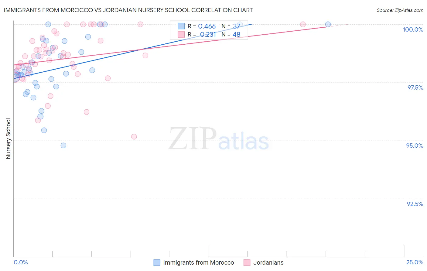 Immigrants from Morocco vs Jordanian Nursery School Correlation Chart