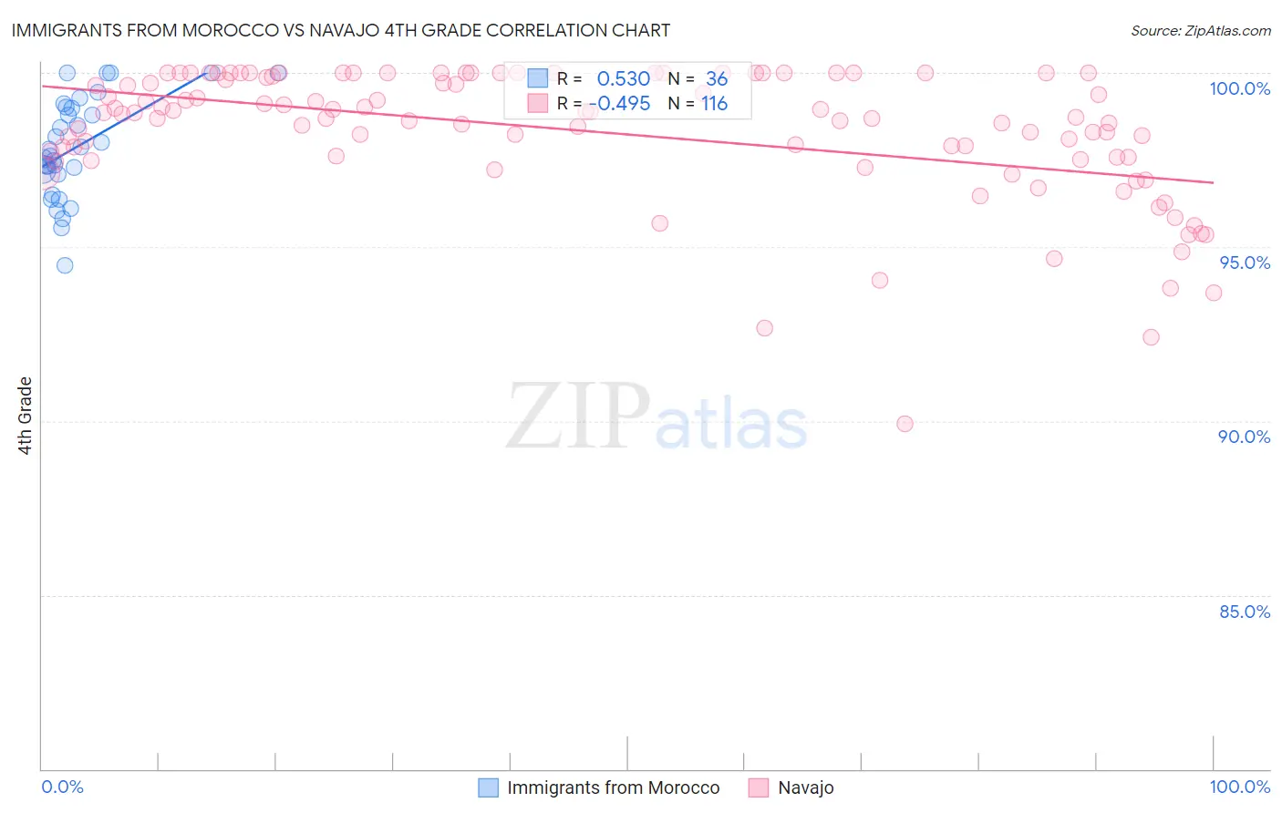 Immigrants from Morocco vs Navajo 4th Grade Correlation Chart
