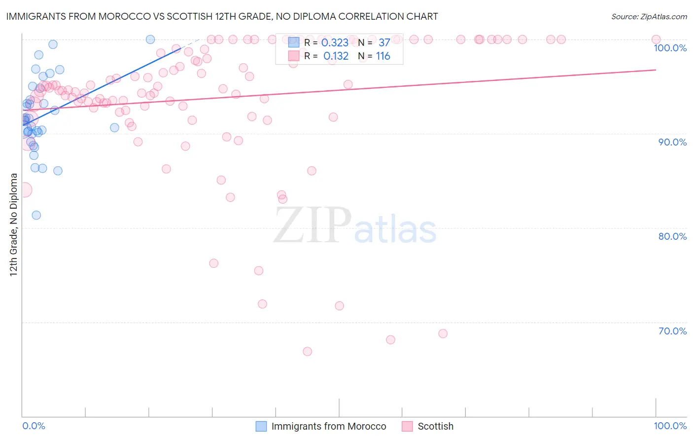 Immigrants from Morocco vs Scottish 12th Grade, No Diploma Correlation Chart
