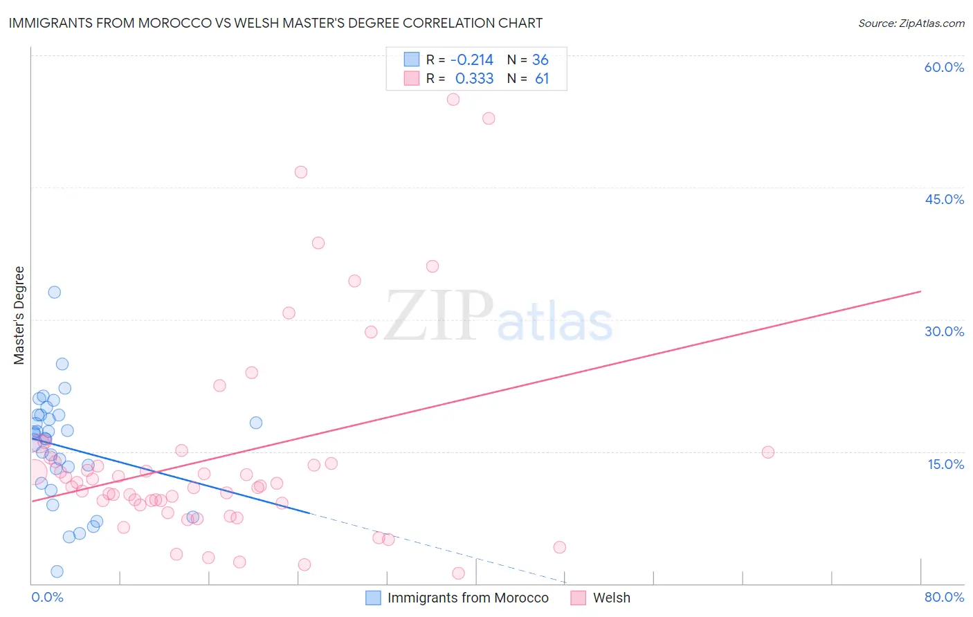 Immigrants from Morocco vs Welsh Master's Degree Correlation Chart