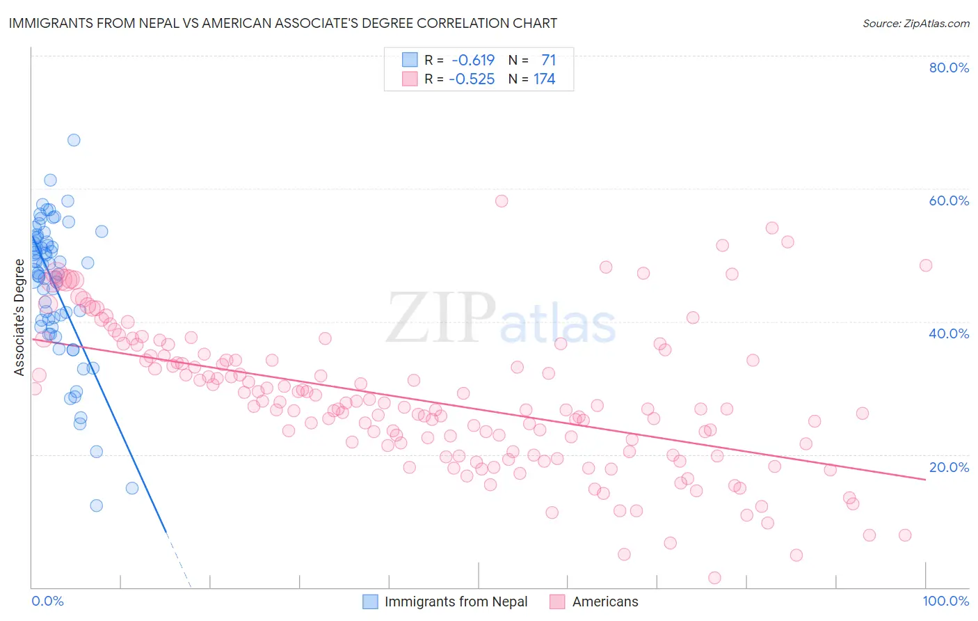 Immigrants from Nepal vs American Associate's Degree Correlation Chart